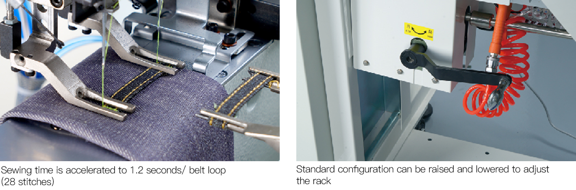 1.The automatic selecting, cutting, folding, feeding and bartacking processes of belt loops are completed at once, saving time and effort.