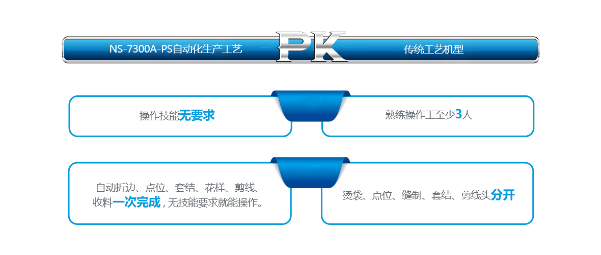 1、全新设计的自动冷折免烫装置,省去折袋和烫袋工序,轻松实现高品质缝纫。