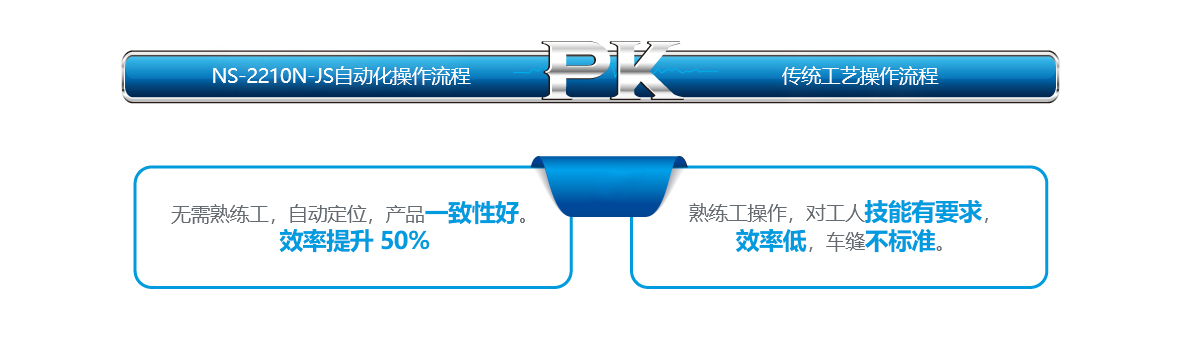 1、工序整合,从定位、送料、缝制到收料,所有工序在一台机器上自动完成。操作员只需放入裁片和按下启动键,机器自动完成整个门襟的缝制。