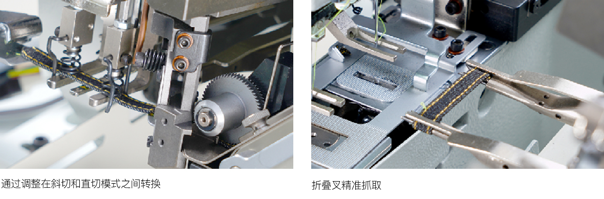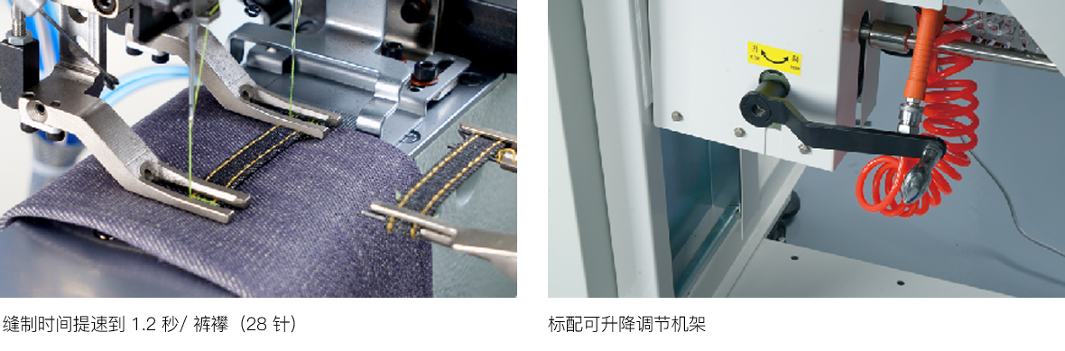 1、裤襻自动筛选、切断、折边、送料和套结工序一次性完成,省时省力。
